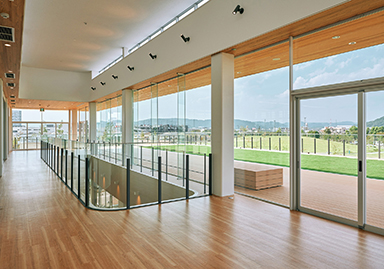 This park management facility will serve as the activity center for the "Urban Forest Nurtured by People's Involvement," the basic philosophy of the development plan for the former site of the Okayama Rail Yard (14.3 ha).