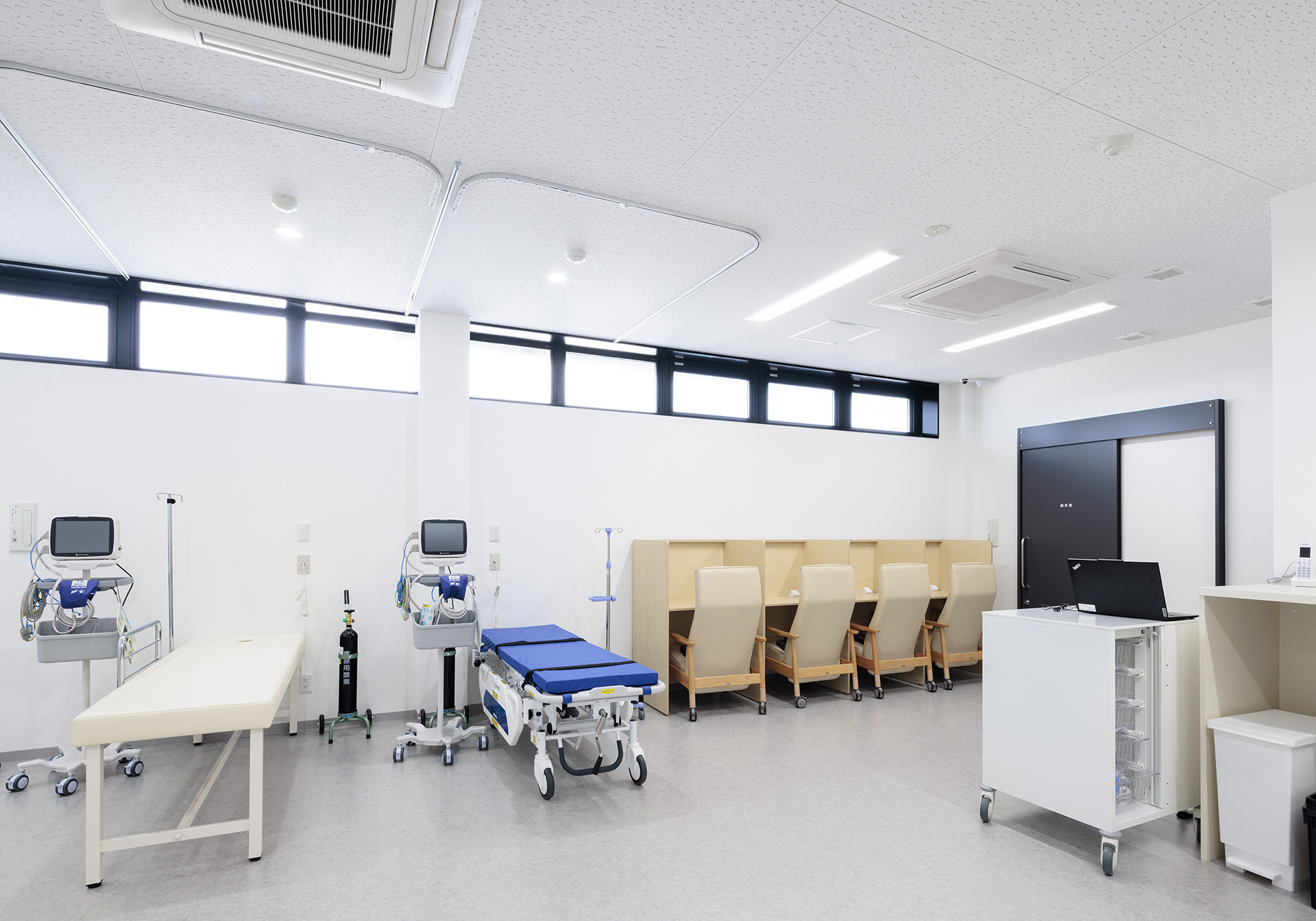 地域に根ざした医療を提供することを目指し、内視鏡・消化器・内科診療を中心に、訪問診療にも対応する総合クリニックです。患者様が安心して来院できる環境づくりを重視し、機能性と温もりを兼ね備えた空間を実現しました。外観は周囲の自然と調和する落ち着いた色調でまとめ、開放感のある大きな窓が特徴です。バリアフリー設計により、すべての方が快適にご利用いただけます。受付・待合スペースには木目を基調とした内装を採用し、柔らかな照明と自然素材が心地よい雰囲気を演出しています。