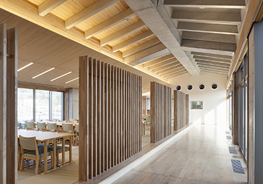 The main functions such as bathing, resting, eating, and drinking are located on the north side of the facility, and the view of the Asahikawa River and the mountains to the north is secured. Around the entrance, a pocket park with footbaths and Takebe Plaza are arranged to create a space that serves as an introduction to the facility.